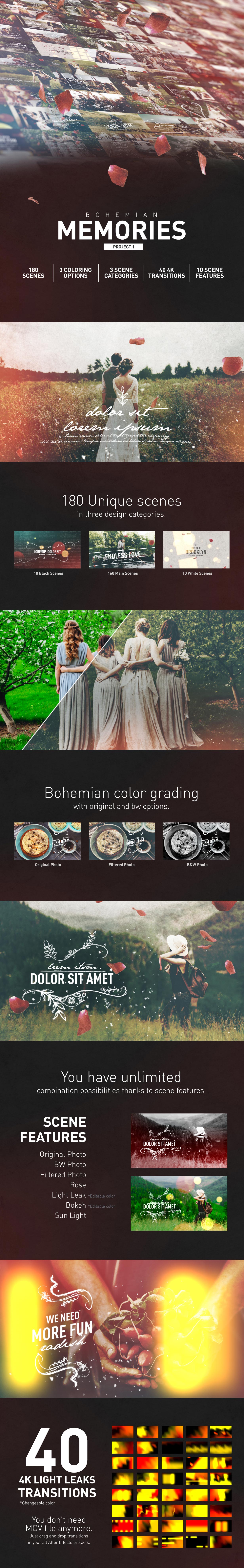The perfect photo gallery after effects template for your special memories. You can use this ae template in adobe after effect upto cs6+ version. We make it easy to have the best after effects video. Will be great as home slideshow gallery, travel stories, wedding slideshow, for promo intro, reels, photo and video portfolio, for photos from your trips and vacations and etc. Project will be great for any ways photo stories: Free download videohive wedding memories photo gallery 28535580 with high speed direct link. Try after effects for free! Download this love leaks template. Cs6 | files included : Download wedding memories video templates by giwigo. A fresh, beautiful and dynamic project that will surely impress your audiance. After effects cc, cs6 | no plugin | 1920×1080 | 15 mb Bohemian color grading, romantic typography, smooth camera animations, multiple photographic compositions and stylish film burn transitions…
